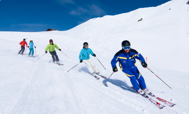 Освоите параллельные лыжи, что позволит перейти на синие склоны и даже попробовать красные, попробуете себя на узких участках, добавите скорости вашему катанию.